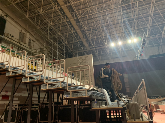 11月24日晚,記者在周口市體育館見到,由馬艷麗領(lǐng)銜回饋家鄉(xiāng)的周商大會國際時裝秀舞臺正在搭建中,據(jù)正在施工的工人介紹,他們每天加班加點(diǎn)布置舞臺,預(yù)計26日舞臺調(diào)試完成,27日開始彩排,28日晚正式開啟時裝秀。