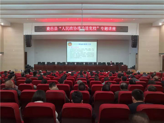 11月27日上午,河南省政協(xié)提案委員會辦公室主任劉俊江為鹿邑縣黨校2020年秋季科級干部意識形態(tài)工作專題研修班、青年干部培訓(xùn)班學(xué)員、縣政協(xié)常委、部分政協(xié)委員、政協(xié)機(jī)關(guān)干部共計(jì)360多人作了精彩生動的專題報告。