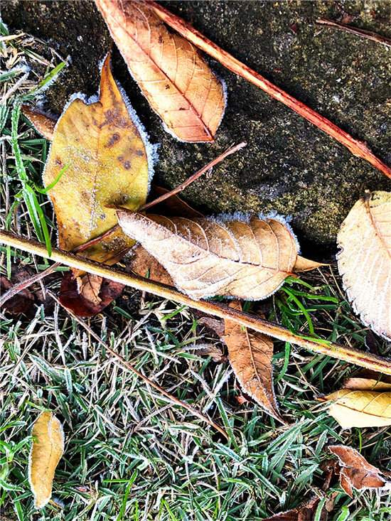百草今何妝?茫茫著華霜。寒煙鎖素艷,疾步量路長。12月4日早晨,我市下霜了,潔白的華霜就像一層薄紗,在陽光的映照下分外美麗。