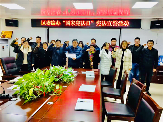 “我宣誓:忠于中華人民共和國(guó)憲法,維護(hù)憲法權(quán)威,履行法定職責(zé),忠于祖國(guó)、忠于人民,恪盡職守、廉潔奉公,接受人民監(jiān)督,為建設(shè)富強(qiáng)、民主、文明、和諧、美麗的社會(huì)主義現(xiàn)代化強(qiáng)國(guó)努力奮斗!”12月4日上午,淮陽(yáng)區(qū)委編辦主任張命令,帶領(lǐng)全體干部職工一起宣誓,洪亮而鏗鏘的誓言響徹宣誓現(xiàn)場(chǎng)。