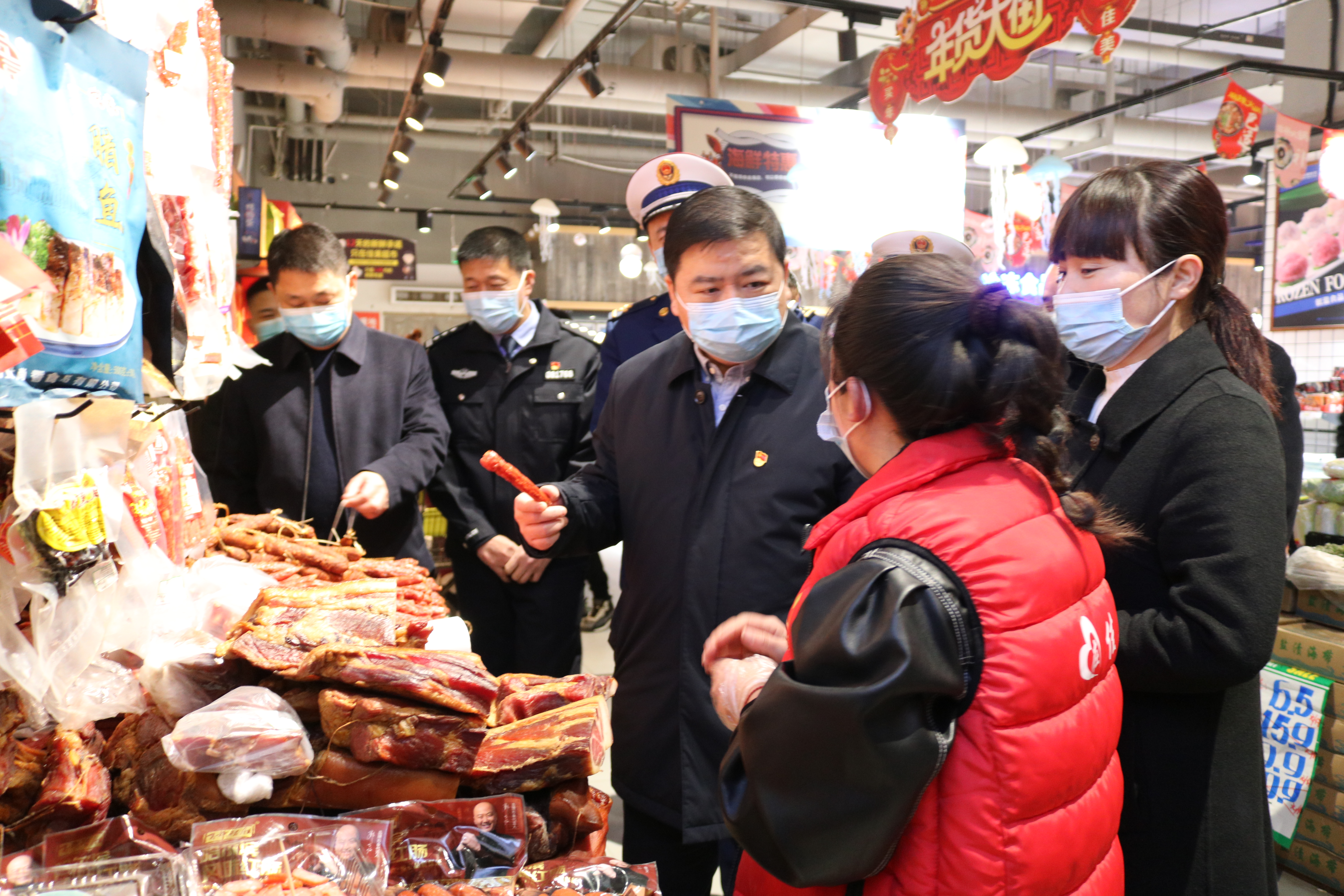 在佳美新時(shí)代超市,李剛來到食品區(qū)、生鮮區(qū)、綜合區(qū),了解節(jié)前物資供應(yīng)、商品價(jià)格、食品安全等情況。李剛指出,臨近春節(jié),采購年貨的人多,人員流通性大,疫情防控工作絲毫不能放松,要高度重視春節(jié)期間食品安全及市場供應(yīng)情況,加大監(jiān)管和巡查力度,加強(qiáng)監(jiān)測和調(diào)控手段,確保價(jià)格平穩(wěn)。同時(shí)要保持消防通道暢通、定期檢修消防器材、排除安全隱患,讓群眾過一個(gè)平安、愉快、祥和的節(jié)日。