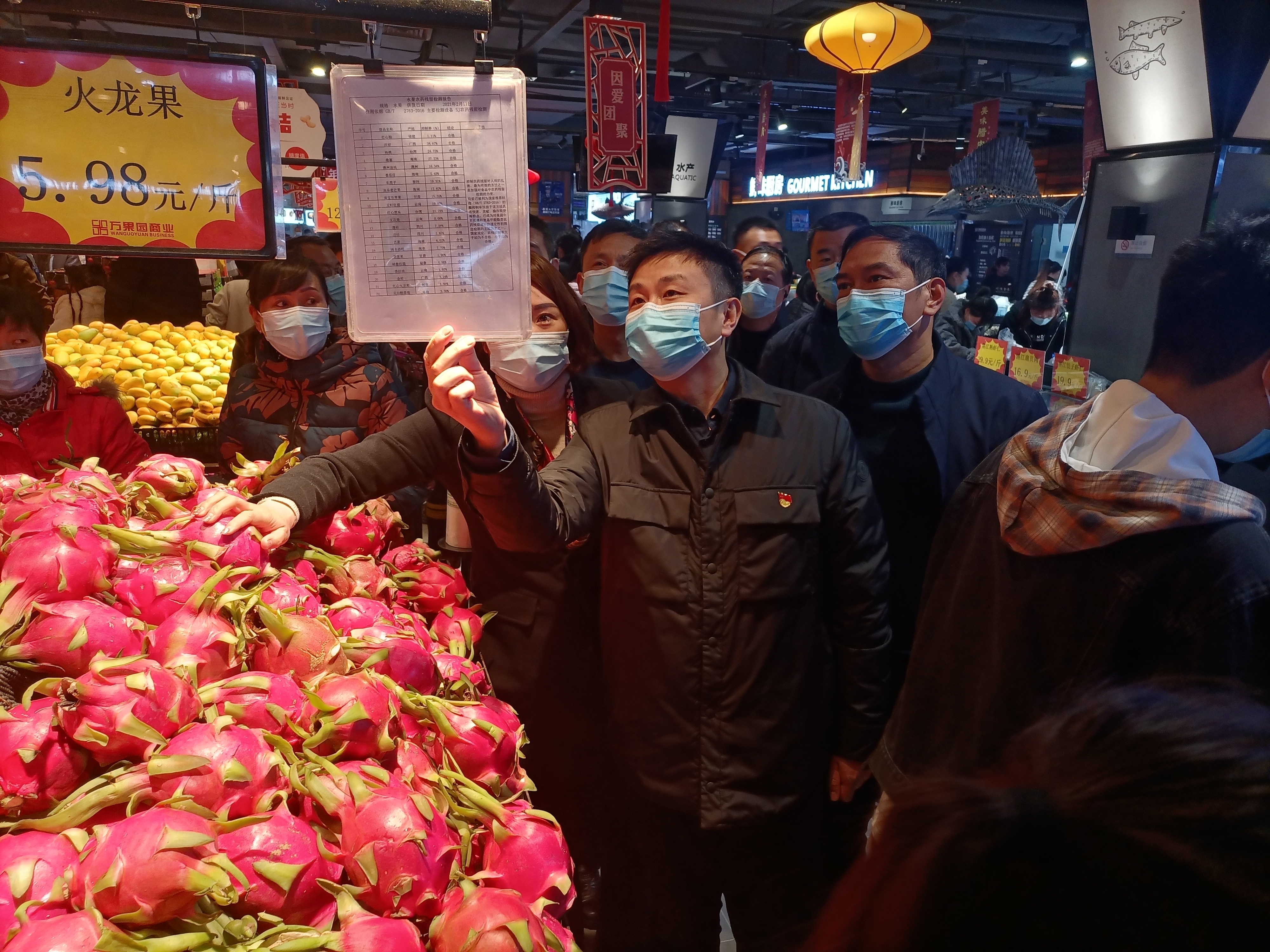 李湛一行還走進(jìn)萬(wàn)果園量販五一廣場(chǎng)店,詳細(xì)了解疫情防控、安全管理、市場(chǎng)經(jīng)營(yíng)及供應(yīng)情況。他指出,要統(tǒng)籌做好疫情防控、安全生產(chǎn)和市場(chǎng)供應(yīng)工作,嚴(yán)把進(jìn)貨關(guān)囗,保障節(jié)日供應(yīng),全力保證消防安全,有效遏制各類安全事故的發(fā)生,讓群眾放心、安全購(gòu)物消費(fèi)。