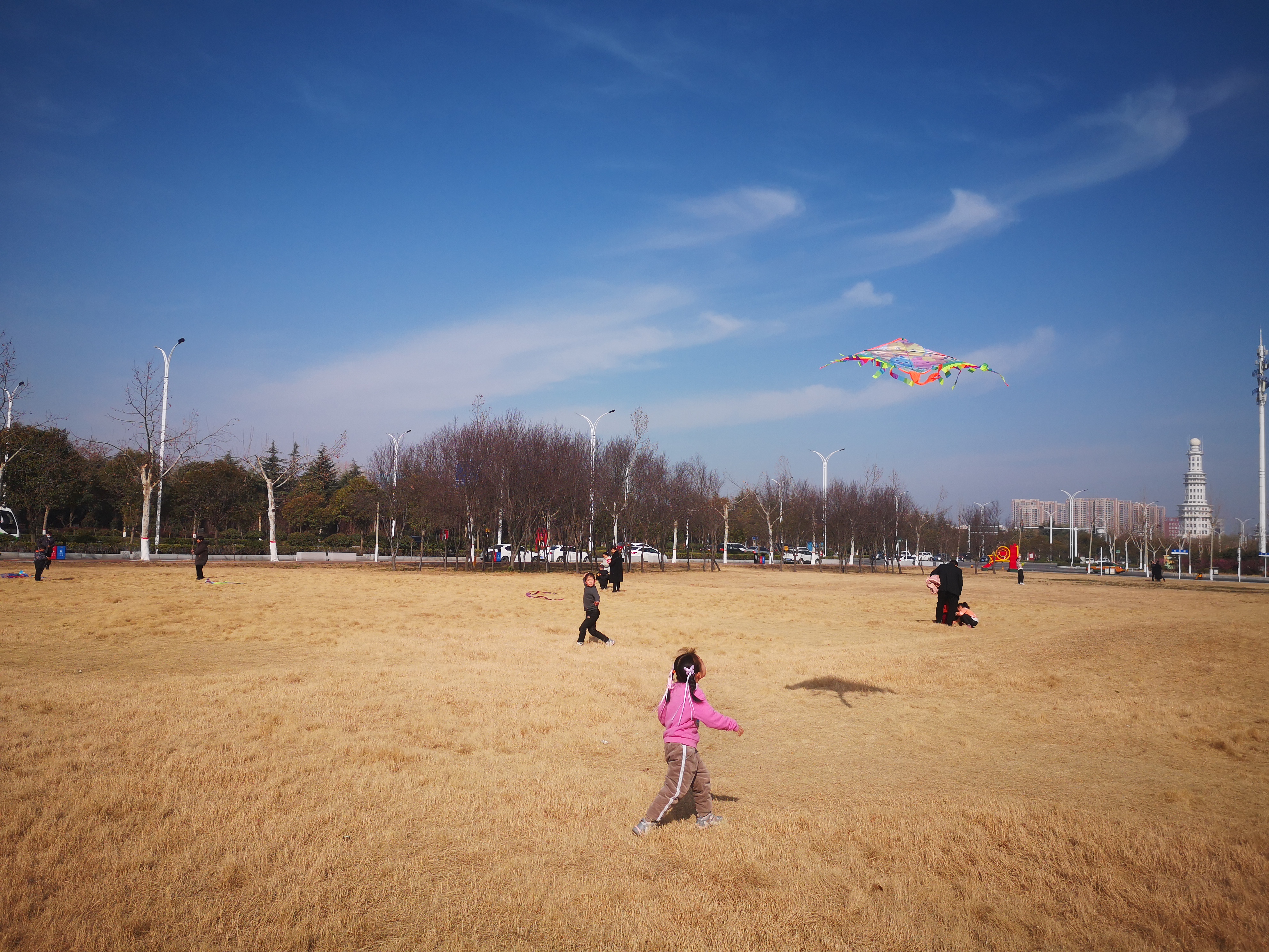 2月16日,周口大道旁邊的大草坪上,小朋友在放飛風(fēng)箏。當(dāng)日,藍天白云,春光正好,民眾樂享春節(jié)假日。
