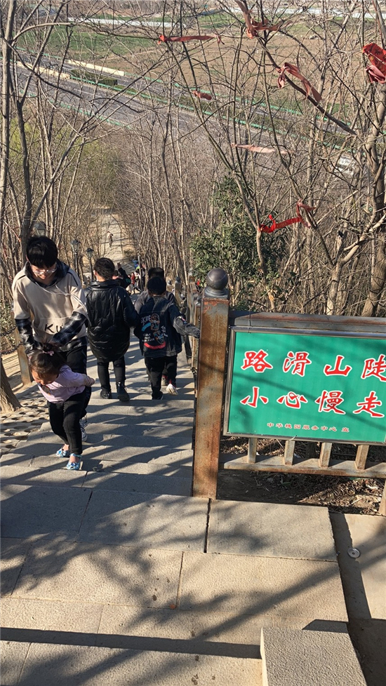 在槐香湖邊,年輕人三五結(jié)伴登上游艇,“坐船能到湖那邊的小島,島上也有槐樹,拍照肯定特別漂亮?!狈掂l(xiāng)大學(xué)生把七星島上的景色留在了自己的相機(jī)里。七星島與槐香湖相連的橋上,人潮擁擠,有的人席地而坐,觀賞著橋上的風(fēng)景。當(dāng)問(wèn)道在外市工作的王先生游玩感受時(shí),他回答到:“年后上班沒(méi)時(shí)間鍛煉身體,今天我把全家人帶來(lái)登山,呼吸一下新鮮空氣?!雹?