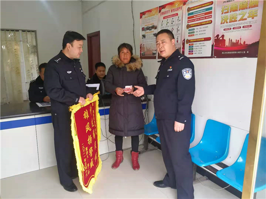 2月27日上午,一名群眾將寫(xiě)著“神速解民憂 雄風(fēng)揚(yáng)警威”錦旗送到川匯公安分局荷花路派出所民警手中,感謝民警們的辛苦付出。錦旗背后的故事還得從一條抖音說(shuō)起。