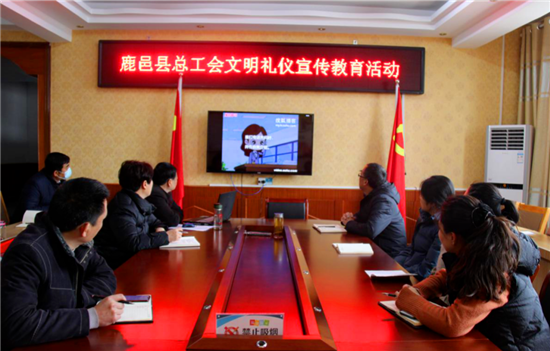 鹿邑縣總工會全體人員集中觀看了《常州市市級機(jī)關(guān)工作人員文明禮儀宣傳教育片》。從接聽電話、公務(wù)接待、參加會議、乘坐電梯、公共場所、文明觀演、文明出行等詳細(xì)介紹了機(jī)關(guān)工作人員應(yīng)做到的禮儀規(guī)范,提醒大家各項(xiàng)禮儀中的注意事項(xiàng)。