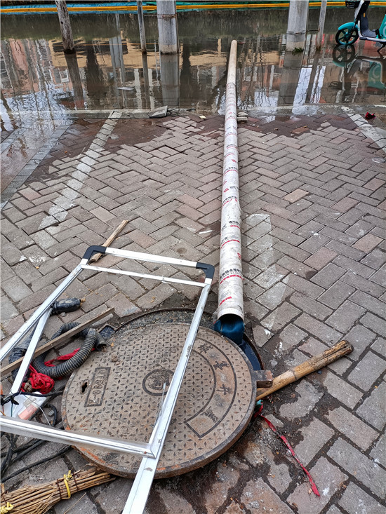 窨井里伸向慢車(chē)道的水管