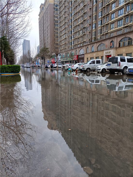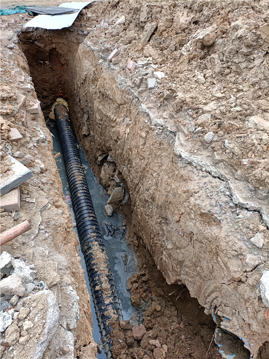 居住在維也納小區(qū)的幾位居民分析說(shuō),維也納大門(mén)前邊的污水有可能是對(duì)面施工堵塞下水道后造成污水溢出造成的。記者又來(lái)到維也納小區(qū)對(duì)面的馨蓮茗苑小區(qū)門(mén)前,那里路面沒(méi)有積水,正在進(jìn)行的市政工程施工工地也沒(méi)有看到有大量污水流淌,在馨蓮茗苑大門(mén)東邊不遠(yuǎn)處有一條挖開(kāi)的管道溝槽,溝槽的底部有少量污水。剛下班的一名工人師傅說(shuō),現(xiàn)在他們正在修建新的下水道,管道建好還得一段時(shí)間,舊的排水管道還在使用,至于路南邊的污水與正在施工的工程有沒(méi)有聯(lián)系,他們也說(shuō)不清楚。