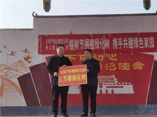 “這楸樹作為行道綠化,真不賴,現(xiàn)在栽上澆點(diǎn)水就能活……”在太康縣朱口鎮(zhèn)周寨村參加捐贈(zèng)儀式的洼陳村村民代表張紅飛說。3月12日,植樹節(jié)當(dāng)日,太康縣朱口鎮(zhèn)與太平洋保險(xiǎn)財(cái)產(chǎn)保險(xiǎn)公司周口支公司在周寨村舉行了“植樹節(jié)捐植綠化樹,攜手共建綠色家園活動(dòng)”,太平洋保險(xiǎn)財(cái)產(chǎn)保險(xiǎn)公司為朱口鎮(zhèn)捐贈(zèng)綠化樹10000棵,助力朱口鎮(zhèn)建設(shè)綠色家園。太平洋保險(xiǎn)公司周口支公司總監(jiān)豆威、總經(jīng)理趙磊和鎮(zhèn)長江海洋等出席了會(huì)議,全鎮(zhèn)52個(gè)村黨支部書記、100多名群眾代表參加了會(huì)議。