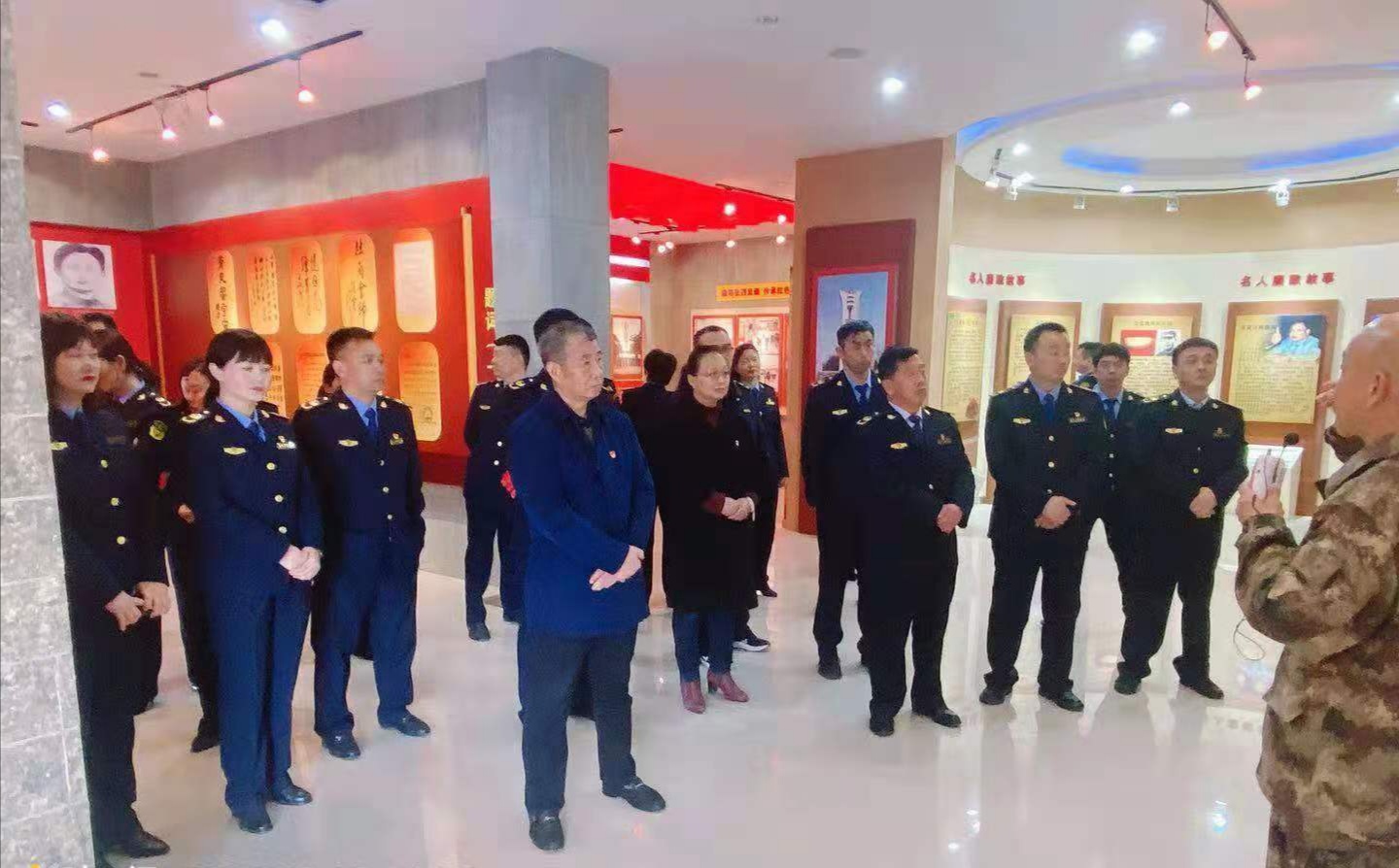在杜崗會(huì)師紀(jì)念館,管理員朱建璽用樸實(shí)的話語為分局全體中層干部上了一堂生動(dòng)的黨課。分局黨組書記李紅旗和參加教育活動(dòng)的全體人員在一塊塊展板前深情駐足,認(rèn)真聆聽管理員的講解,接受革命洗禮。面對(duì)革命先烈一次次豐功偉績(jī),全體人員再次舉起右手,重溫入黨誓詞,他們莊嚴(yán)宣誓,鏗鏘有力,堅(jiān)決用實(shí)際行動(dòng)奮進(jìn)新征程。