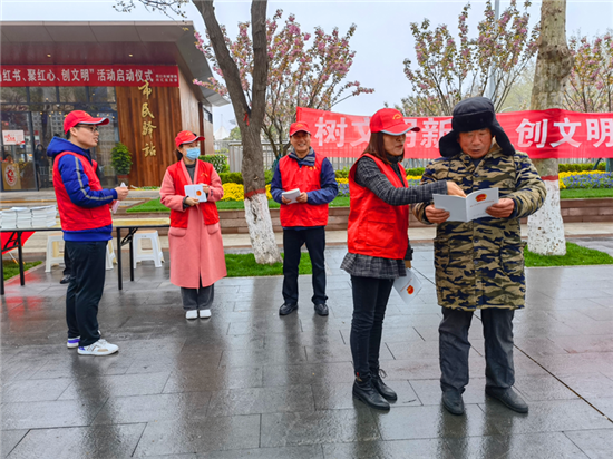 在活動(dòng)現(xiàn)場(chǎng),城管志愿者頭戴小紅帽,身穿紅馬甲,向過往群眾發(fā)放講解《周口市文明行為促進(jìn)條例》,耐心解答市民提出的問題,以實(shí)際行動(dòng)倡導(dǎo)文明、傳播文明,展現(xiàn)城管志愿者的積極風(fēng)采和良好的精神風(fēng)貌。②10