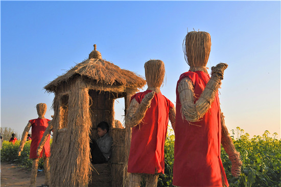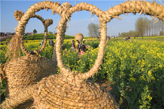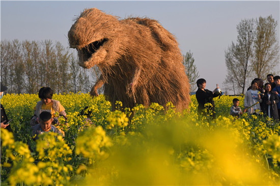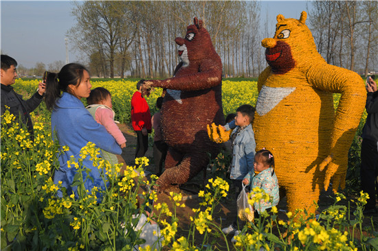 4月5日上午,在商水縣鄧城鎮(zhèn)沙潁河畔萬(wàn)畝油菜花海,來(lái)自周邊縣市區(qū)和附近鄉(xiāng)鎮(zhèn)的群眾一撥接一撥地駕車(chē)到這兒打卡游玩,特別是卡通稻草人景點(diǎn)內(nèi)熱鬧非凡。