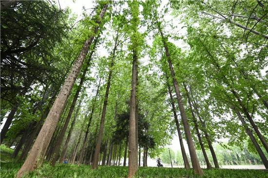 與城區(qū)的各個游園相比,此處稍顯僻靜,翠陰蒙密,再加上流水淙淙,更有風物清幽之感。閑暇之時,三三兩兩的居民結伴散步,大自然的靜謐與靈動在這里相交相融,讓人心曠神怡。