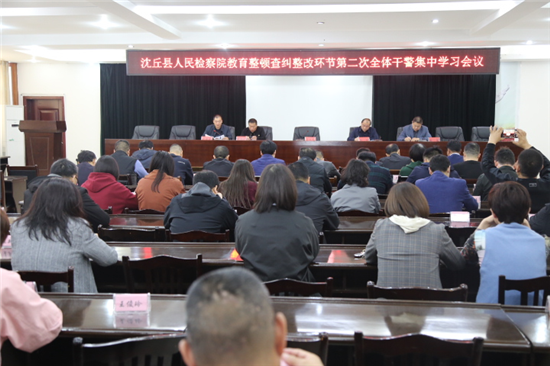 為扎實做好檢察隊伍教育整頓查糾整改環(huán)節(jié)工作持續(xù)開展,深入細致做好思想發(fā)動和政策落實,4月19日,沈丘縣檢察院開展隊伍教育整頓查糾整改環(huán)節(jié)第二次集中學習會議。院黨組成員、政治部主任胡新建主持會議。全體干警參加會議。