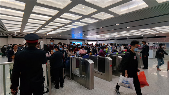 記者從高鐵周口東站了解到,與疫情發(fā)生以來的客流量相比,“五一”假期期間客流量大幅回升。其中,“五一”假期最后一天發(fā)送旅客近1.9萬人次,共保障95列車滿圖運行?!拔逡弧奔倨谄陂g,每天6時至8時、22時至23時客流量較大,為確保旅客順利進站乘車,高鐵周口東站及時發(fā)布大客流預(yù)警信息,告知旅客提前到站,停止售票時間是開車前20分鐘,停止檢票時間是開車前5分鐘。
