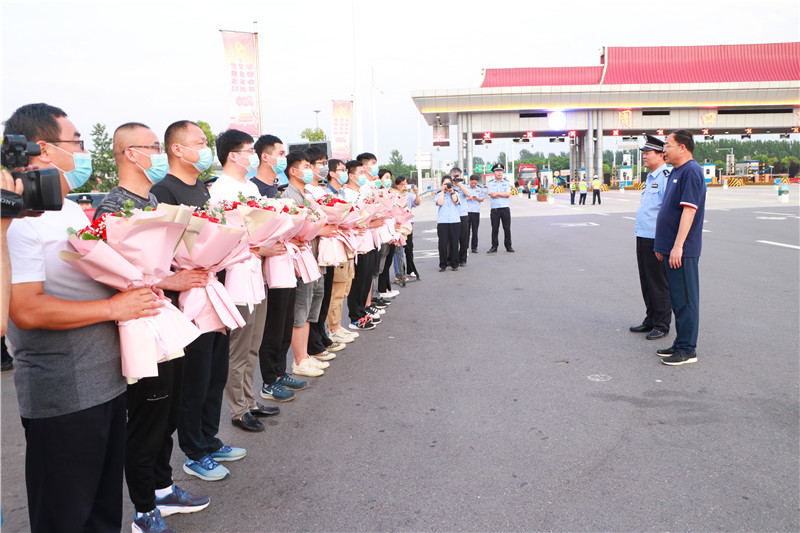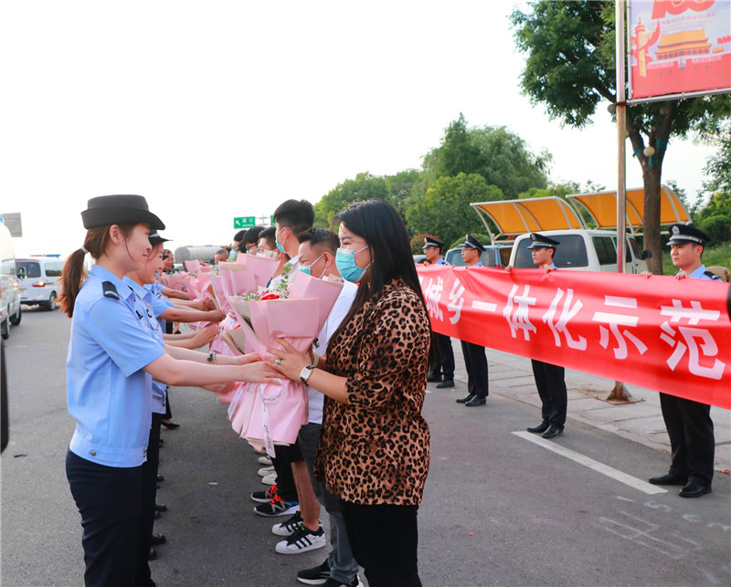 當(dāng)日19時(shí)許,示范區(qū)二級(jí)調(diào)研員丁有亮,示范區(qū)公安分局黨委書記、局長(zhǎng)何學(xué)民等同志前往迎接,歡迎勝利歸來的抓捕民警。當(dāng)抓捕組車輛駛出高速路口時(shí),現(xiàn)場(chǎng)響起熱烈的掌聲。丁有亮、何學(xué)民與參戰(zhàn)民警一一親切握手,對(duì)凱旋的民警表示歡迎和祝賀,民警代表將象征勝利和榮譽(yù)的鮮花獻(xiàn)給抓捕組民警。丁有亮表示向不辱使命、不畏艱險(xiǎn)、勇打勝仗的參戰(zhàn)民警表示慰問,并要求他們把握戰(zhàn)機(jī),繼續(xù)擴(kuò)大戰(zhàn)果,再接再厲,再立新功。何學(xué)民指出,示范區(qū)公安分局將乘勢(shì)而上、提振士氣,縱深開展“迅雷”行動(dòng),出重拳打擊電信詐騙犯罪行為。