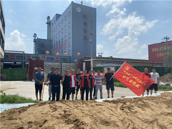 西華縣“萬人助萬企”活動辦公室副主任、縣工信局局長趙宏偉立即向縣“萬人助萬企”指揮部進(jìn)行了匯報,并組織工信局防汛應(yīng)急突擊隊16名隊員迅速趕往西華縣凱馨面粉廠,裝沙袋,加固糧倉,運(yùn)沙土,筑牢廠區(qū)第一道防水隔離帶。防汛應(yīng)急突擊隊隊員僅用2個小時的時間完成了企業(yè)的防汛要求,企業(yè)負(fù)責(zé)人十分滿意。 ③7