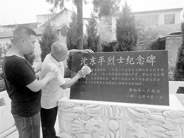 當(dāng)?shù)卣疄榫拺延⒘?,在沈東平的家鄉(xiāng)舞陽縣太尉鎮(zhèn)林莊村,為沈東平建起墓地。
