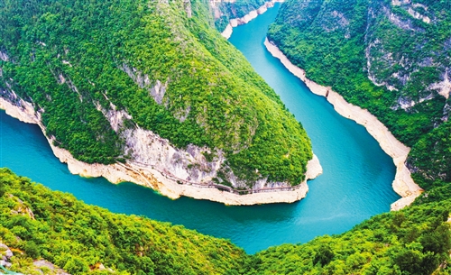 近年來,長江重慶段生態(tài)環(huán)境持續(xù)改善。圖為位于長江支流大寧河流域重慶市巫山縣小三峽滴翠峽的魚頭灣。 新華社記者 王全超攝
