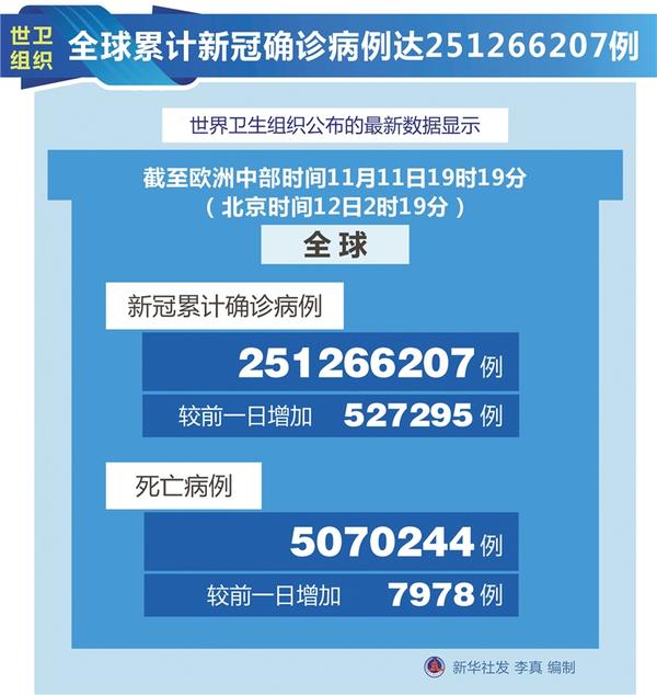 世衛(wèi)組織全球累計(jì)新冠確診病例達(dá)251266207例
