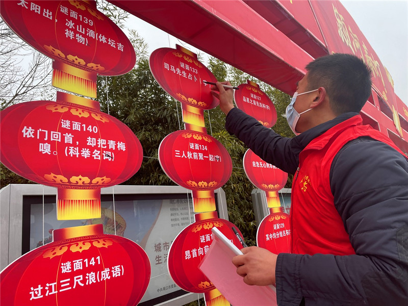 “阿姨您好!148號燈謎的謎底是‘香皂’。”2月15日,在周口市文化藝術(shù)中心西廣場,正在舉行“潁河春燈——元宵燈謎猜猜猜”活動。“我最喜歡猜燈謎了,猜對以后我還能拿到一個玩具小飛機,真開心!”說話的這個小男孩姓汪,今年8歲,在今天這場猜燈謎活動中,他是第一位給出正確答案的參與者。