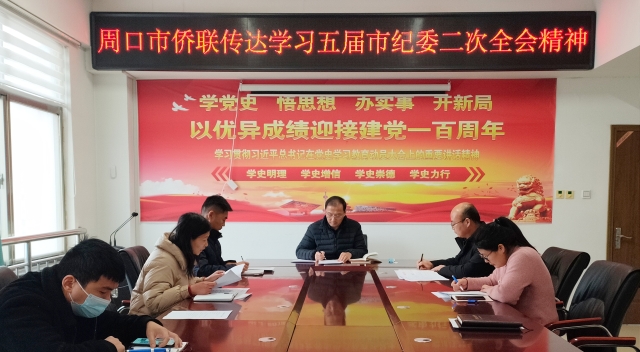 2月16日,周口市僑聯(lián)召開(kāi)黨組(擴(kuò)大)會(huì)議,傳達(dá)學(xué)習(xí)市委五屆二次全會(huì)暨市委經(jīng)濟(jì)工作會(huì)議精神,市僑聯(lián)黨組書(shū)記、主席馮連根主持會(huì)議。