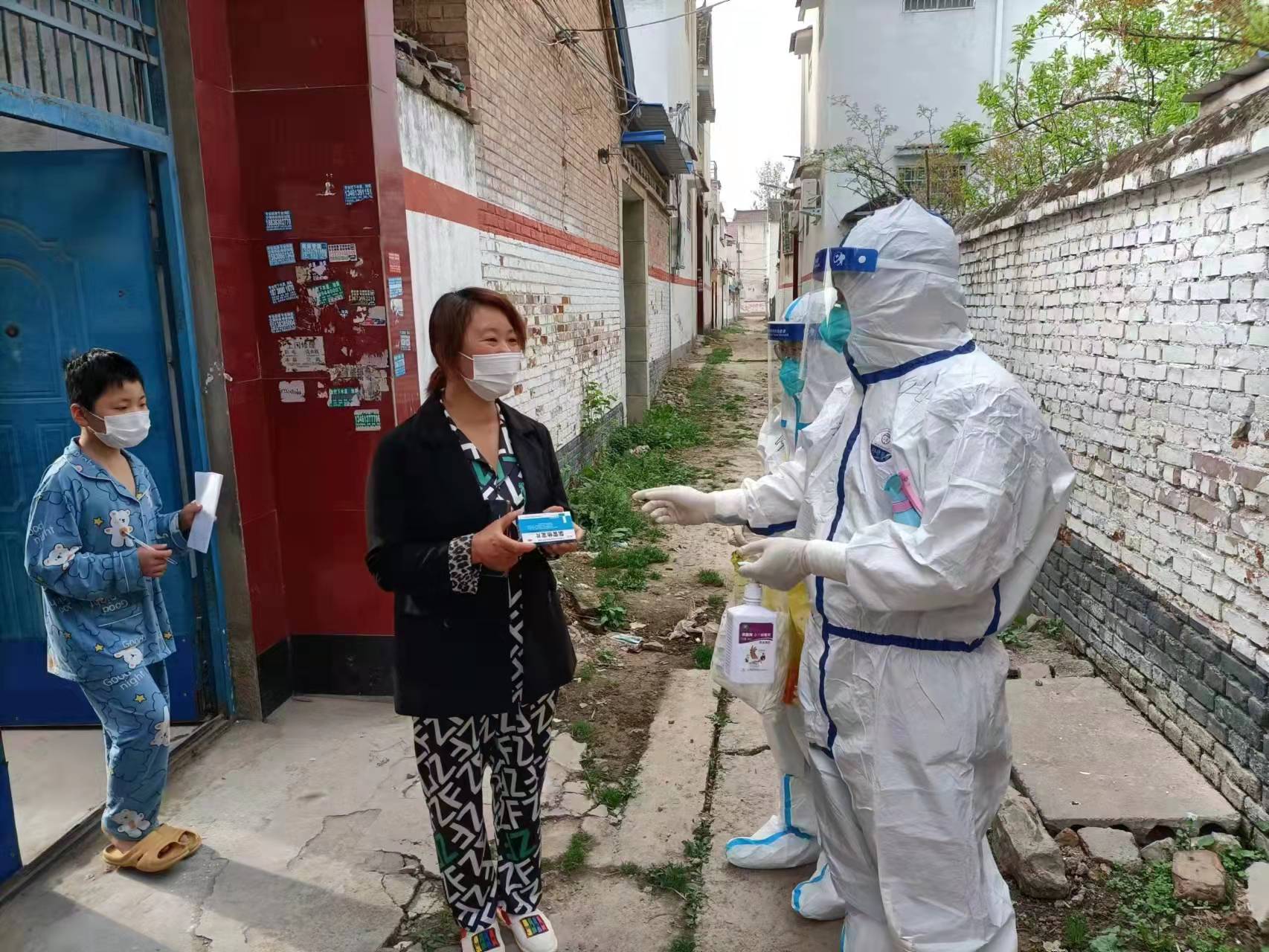 到達太康后,王群禮被分到了城關回族鎮(zhèn)封控區(qū)進行入戶核酸采集,當時的他也很緊張,認真地穿防護服,熟記采集核酸的每一個動作要領,然后投身抗疫最前線。在入戶采樣的時候,王群禮發(fā)現有一個小女孩獨自在家,她每次聽到敲門聲都是先開一點縫,悄悄觀察外面,當看到是防疫人員時,才慢慢打開門。“我可以看出她的恐懼和無助,不知道她晚上怕不怕,會不會做飯,問她怎么吃飯,她也不說話,我心里很不是滋味?!睆哪翘扉_始,王群禮每次入戶采核酸的時候,就幫她帶點吃的,王群禮會把他的早餐留給她,還把自己的水果、零食也都送給她。