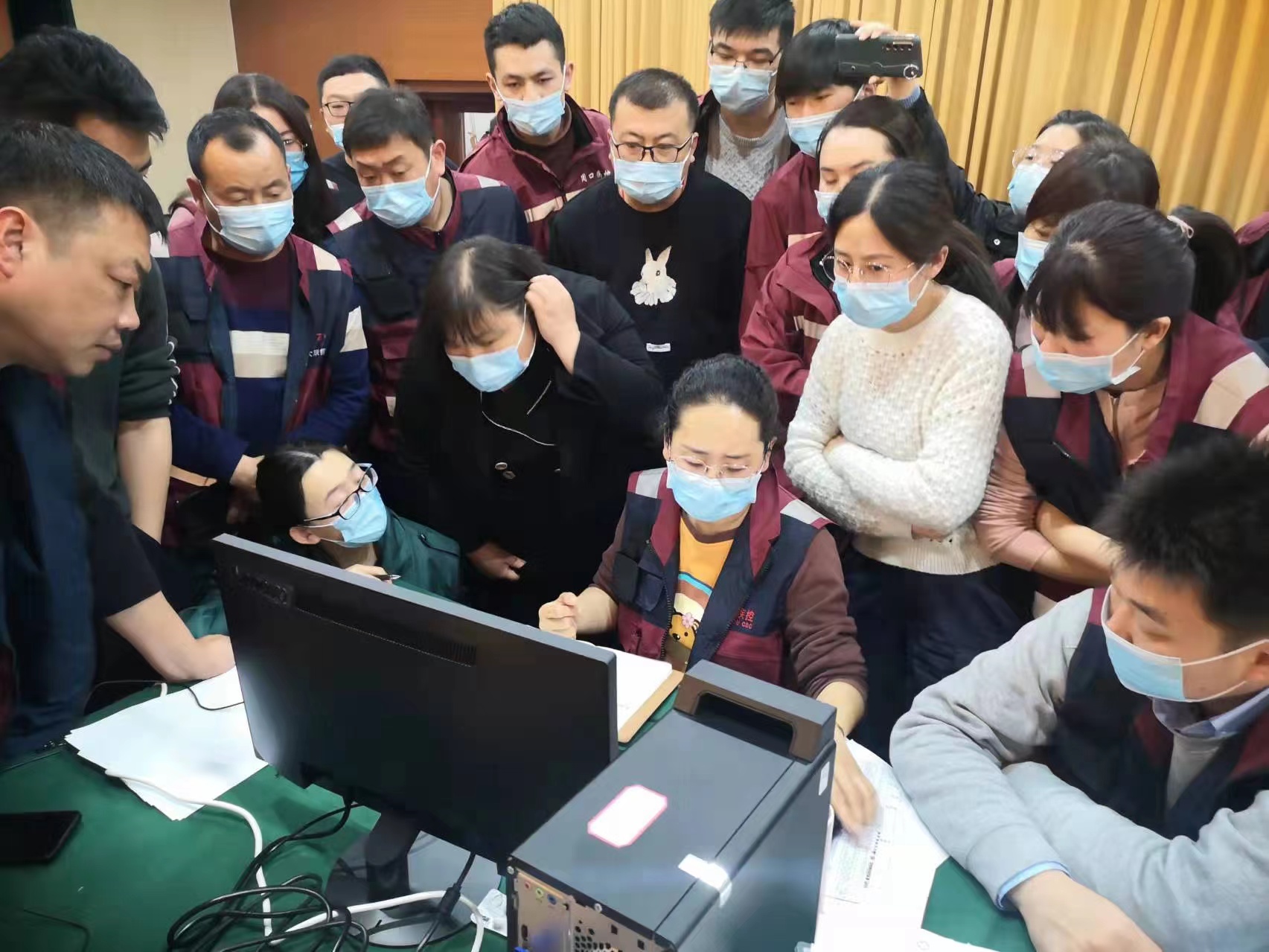3月22日,突然收到了太康出現(xiàn)疫情的消息,袁倩來不及任何思考和準備,火速前往單位集合趕赴太康疫情現(xiàn)場。此次袁倩承擔的任務(wù)是作為流調(diào)溯源信息組的組長,負責派發(fā)流調(diào)任務(wù)、向隔離轉(zhuǎn)運專班推送密接和次密接人員名單、和公安對接去過風險場所的名單等工作。這是一個看似簡單實則繁瑣的任務(wù),發(fā)揮著協(xié)調(diào)流調(diào)溯源專班內(nèi)部信息流轉(zhuǎn)以及對接其他專班的樞紐作用,關(guān)系到信息流轉(zhuǎn)的暢通和效率。她們必須隨時接收陽性病例信息并第一時間完成任務(wù)派發(fā)和密接、次密接名單推送。睡眠不足、吃飯沒點、嗓子累啞成為工作常態(tài),絕大多數(shù)隊員是靠著金嗓子喉寶、西瓜霜含片在堅持工作。她和同事們克服連續(xù)奮戰(zhàn)的苦與累之后,終于挖掘了所有病例、密接人員、次密接人員以及他們?nèi)ミ^的風險場所,第一時間切斷傳播途徑,遏制了疫情發(fā)展,最終為取得太康疫情的全面勝利作出了積極貢獻。