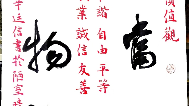 程度 中國(guó)書法家協(xié)會(huì)理事、隸書委員會(huì)委員,北京書法家協(xié)會(huì)理事,北京市朝陽(yáng)區(qū)書法家協(xié)會(huì)秘書長(zhǎng)(社會(huì)主義核心價(jià)值觀)