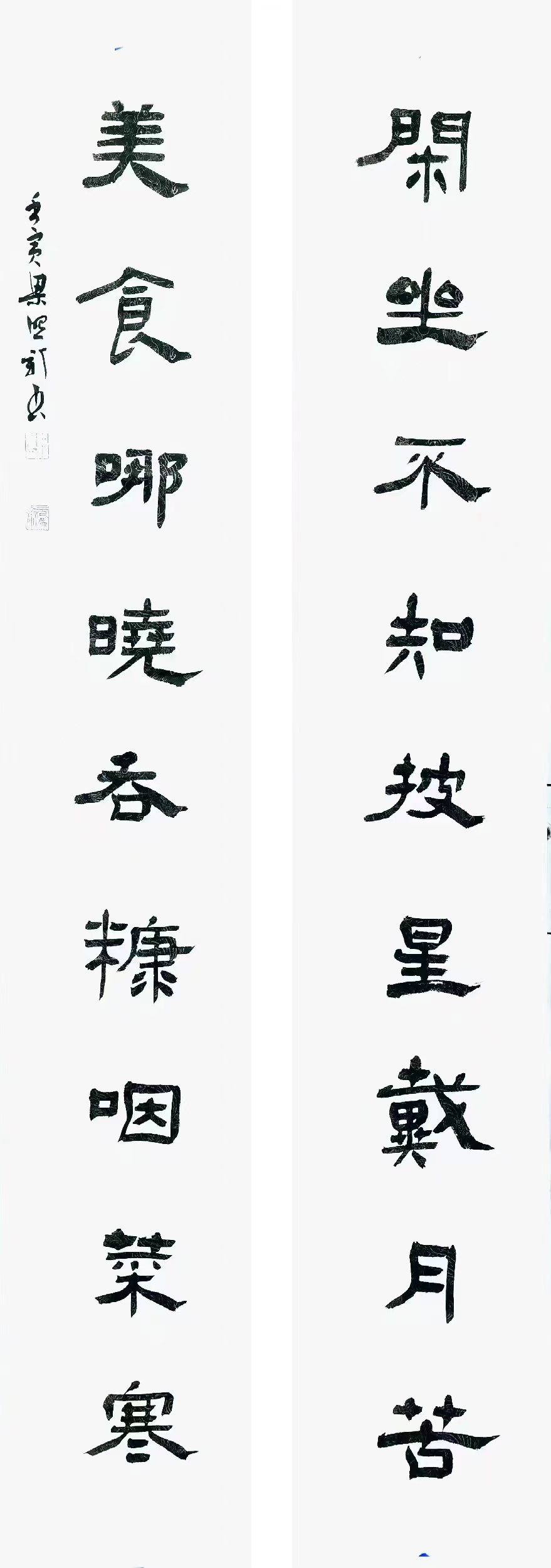 梁照新 中國書法家協(xié)會會員,河南省隸書委員會委員,周口市書法家協(xié)會副主席(對聯(lián):閑坐不知披星戴月苦 美食哪曉吞糠咽菜寒)