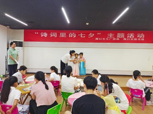 七夕今宵看碧霄,牽??椗珊訕?。8月20日,一場別開生面的“詩詞里的七夕”主題活動在周口市圖書館青少年活動中心舉行。書香覓詩詞、同心題詩詞、粘土畫詩詞……參與的孩子在詩情畫意中感受到中華傳統節(jié)日的內涵。