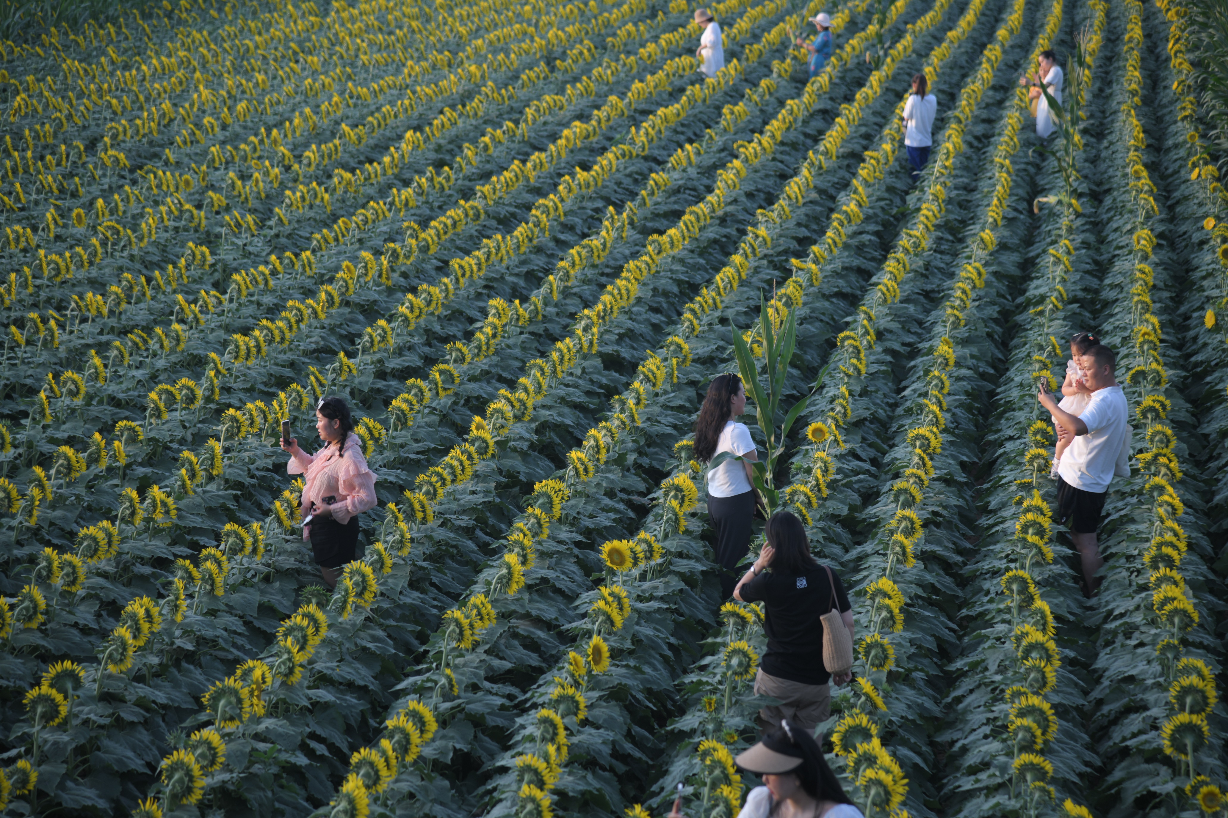 近年來(lái),我市以創(chuàng)建全國(guó)文明城市為引領(lǐng),加快推進(jìn)沙潁河生態(tài)經(jīng)濟(jì)帶全域文旅項(xiàng)目建設(shè),提升沿河綠化景觀效果,給市民增加游玩好去處。圖為昨日市民在沙潁河南岸武盛大道東側(cè)的千畝向日葵花海游玩。記者付永奇攝 ②15