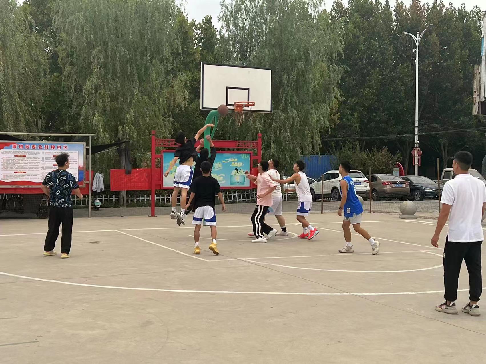 9月20日下午,開(kāi)發(fā)區(qū)淮河路辦事處康樓居委會(huì)廣場(chǎng)上喊聲如潮,這里正在進(jìn)行淮河路辦事處聯(lián)合周口技師學(xué)院的籃球友誼賽。