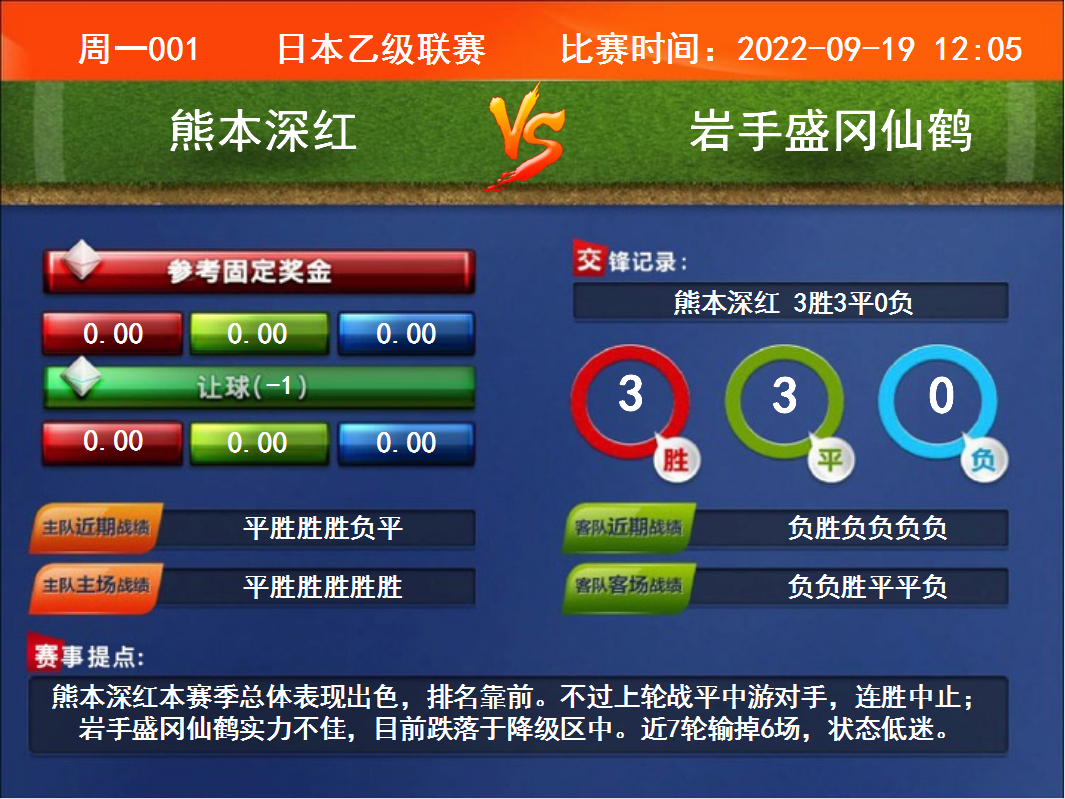 周一001 日本乙級聯(lián)賽 熊本深紅VS巖手盛岡仙鶴