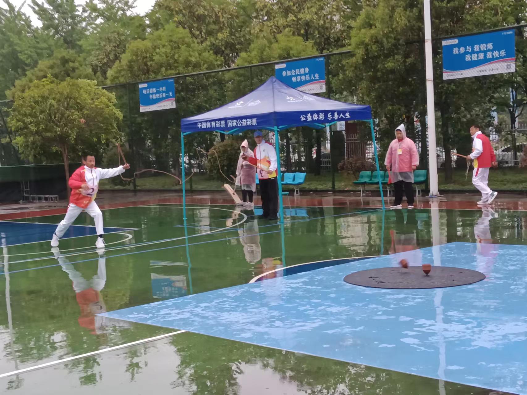 4月23日,在細雨蒙蒙中,河南省第九屆少數(shù)民族傳統(tǒng)體育運動會陀螺項目在市體育中心籃球場拉開比賽帷幕。