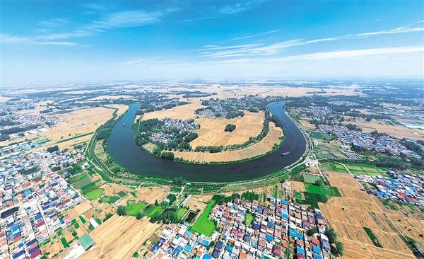 6月6日上午,在川匯區(qū)官坡村西側,兩艘貨船沿沙河西行。沙河在這里繞了個彎,藍天下,碧水、貨船、村莊、農田宛如一幅油畫,格外美麗,展現了中原港城周口的生態(tài)之美。