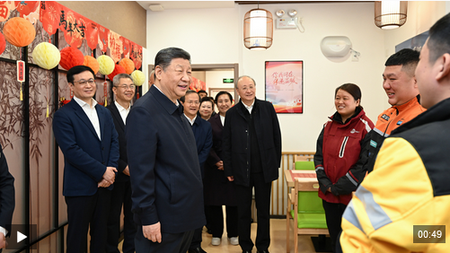 10日上午,習(xí)近平總書記來到北京市西城區(qū)新街口街道父母食堂考察。見到在這里休息的3名快遞小哥,習(xí)近平關(guān)切詢問他們跑快遞多久了、工作累不累、收入怎么樣、春節(jié)回不回家,為他們付出的辛勞和作出的貢獻(xiàn)點贊。習(xí)近平說,你們滿足千家萬戶需求,城市運轉(zhuǎn)離不開你們,希望你們都能夠生活得好、工作得好。習(xí)近平強(qiáng)調(diào),各級黨委和政府一定要關(guān)心新就業(yè)群體,為他們的生活、工作、學(xué)習(xí)提供好服務(wù)。
