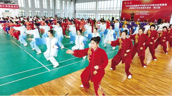參賽隊(duì)員在比賽中。近日,2025年全國(guó)健身氣功助力鄉(xiāng)村振興志愿者服務(wù)暨百城千村展演交流展示活動(dòng)·周口站在周口市體育中心老年館拉開帷幕,來自我市健身氣功協(xié)會(huì)24個(gè)站點(diǎn)的代表隊(duì)及周口高校的5支大學(xué)生參賽隊(duì)共200余人齊聚一堂,在五禽戲、八段錦、大舞、導(dǎo)引養(yǎng)生功十二法四大項(xiàng)目40個(gè)小項(xiàng)中展開精彩角逐。