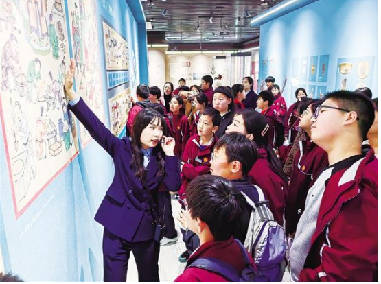 近日,周口市文昌小學(xué)六年級九班的同學(xué)們在認真聆聽講解員講述中醫(yī)藥知識。