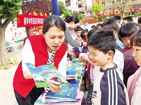 4月9日,志愿者向學生講解反邪教知識。當天,扶溝縣科協(xié)聯(lián)合縣委統(tǒng)戰(zhàn)部、縣民宗局、縣教體局開展“鑄牢中華民族共同體意識暨民族宗教政策法規(guī)宣傳月”活動,為回族小學師生送去科普圖書及宣傳物品2000余件。