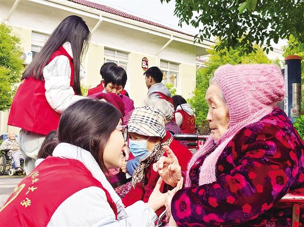 3月15日,志愿者和老人拉家常。當(dāng)日,河南科技職業(yè)大學(xué)組織青年志愿者走進(jìn)周口市老年護(hù)理院,開展以“暖心敬老行,情滿夕陽紅”為主題的敬老愛老活動(dòng)。