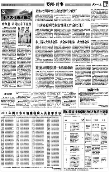 2012年周口市申請廉租房人員名單公示
