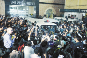 孟加拉國(guó)反對(duì)黨領(lǐng)導(dǎo)人被執(zhí)行死刑 4月11日,在孟加拉國(guó)首都達(dá)卡,人們圍住運(yùn)送卡馬魯扎曼尸體的救護(hù)車(chē)。當(dāng)晚,孟加拉國(guó)反對(duì)黨伊斯蘭大會(huì)黨領(lǐng)導(dǎo)人卡馬魯扎曼在首都達(dá)卡中央監(jiān)獄被執(zhí)行死刑。新華社發(fā)