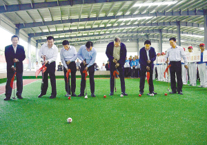 本報(bào)訊 (記者 李鳳霞 宋馨 沈湛 文/圖) 5月5日上午,“中國(guó)體育彩票杯”河南省第十二屆老年人體育健身大會(huì)門球交流活動(dòng)在周口體育中心門球館舉行。省老年體協(xié)主席馬憲章,省體育局局長(zhǎng)張文深,市委書記、市人大常委會(huì)主任徐光,市長(zhǎng)劉繼標(biāo),正市長(zhǎng)級(jí)干部李紹彬,市人大常委會(huì)副主任、市老年體協(xié)主席游保峰,省老年體協(xié)副主席王瑋等領(lǐng)導(dǎo)共同為活動(dòng)開球(如圖)。
