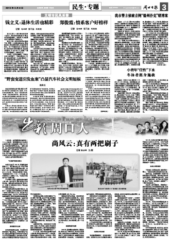 過(guò)了一段時(shí)間,一天梁先生下班從尚風(fēng)云身邊經(jīng)過(guò)時(shí),主動(dòng)上前搭話,還請(qǐng)他到附近的飯館吃了頓便飯。梁先生告訴尚風(fēng)云:“河南人名聲不好,坑蒙拐騙的事經(jīng)常發(fā)生,我很難信任你?!鄙酗L(fēng)云向他解釋,人上一百,形形色色,哪里都有好人和壞人,周口是老子故里、禮儀之鄉(xiāng),民風(fēng)是非常淳樸的。梁先生笑了笑,不置可否。