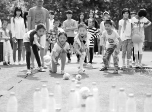 安徽亳州:留守兒童大學(xué)校園歡樂迎“六一” 5月24日,在安徽省亳州職業(yè)技術(shù)學(xué)院,幾名留守兒童在玩“保齡球”游戲。當(dāng)日,安徽省亳州職業(yè)技術(shù)學(xué)院邀請(qǐng)譙城區(qū)牛集鎮(zhèn)安溜小學(xué)50多名留守兒童來到大學(xué)校園,開展“放飛夢(mèng)想迎六一”主題活動(dòng)。大學(xué)生與孩子們一起進(jìn)行了各種趣味游戲,讓孩子們提前過了一個(gè)開心的“六一”兒童節(jié)。新華社發(fā)